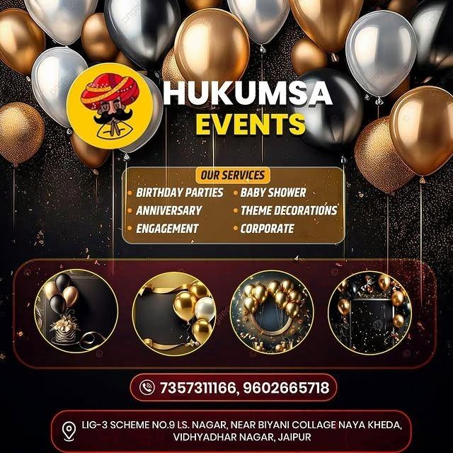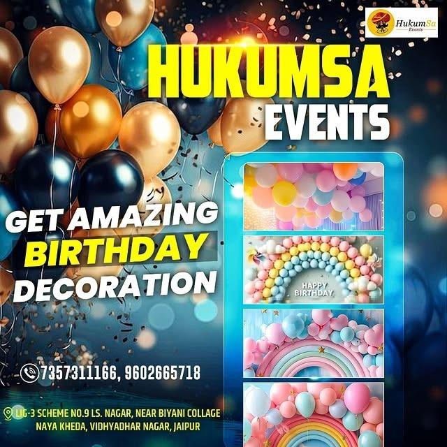 Hukumasa Event – Balloon Decoration & Party Planner in Jaipur, offers stunning and budget-friendly decoration and event planning services for birthdays, baby showers, kids’ parties, and special celebrations. From simple home decorations to grand party setups, their creative team ensures every event looks unique and memorable.